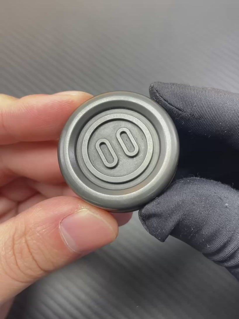 Haptic Coin toy, played with by rotating the ratchet and magnet to decompress.